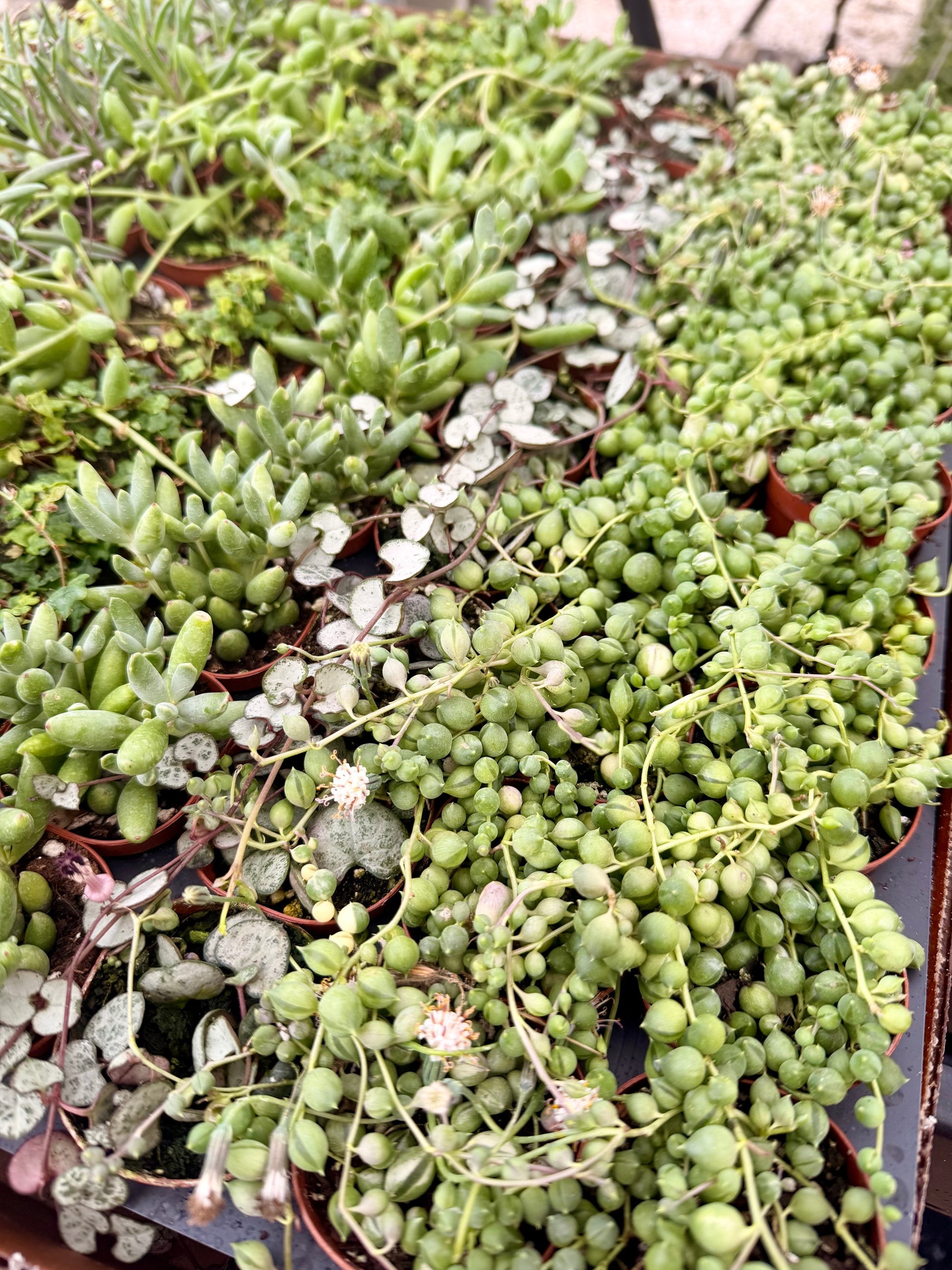You'll receive 3 of the following: String of Pearls, String of Pearls Variegated, String of Frogs, String of Hearts, String of Turtles, String of Rubies or String of Watermelon